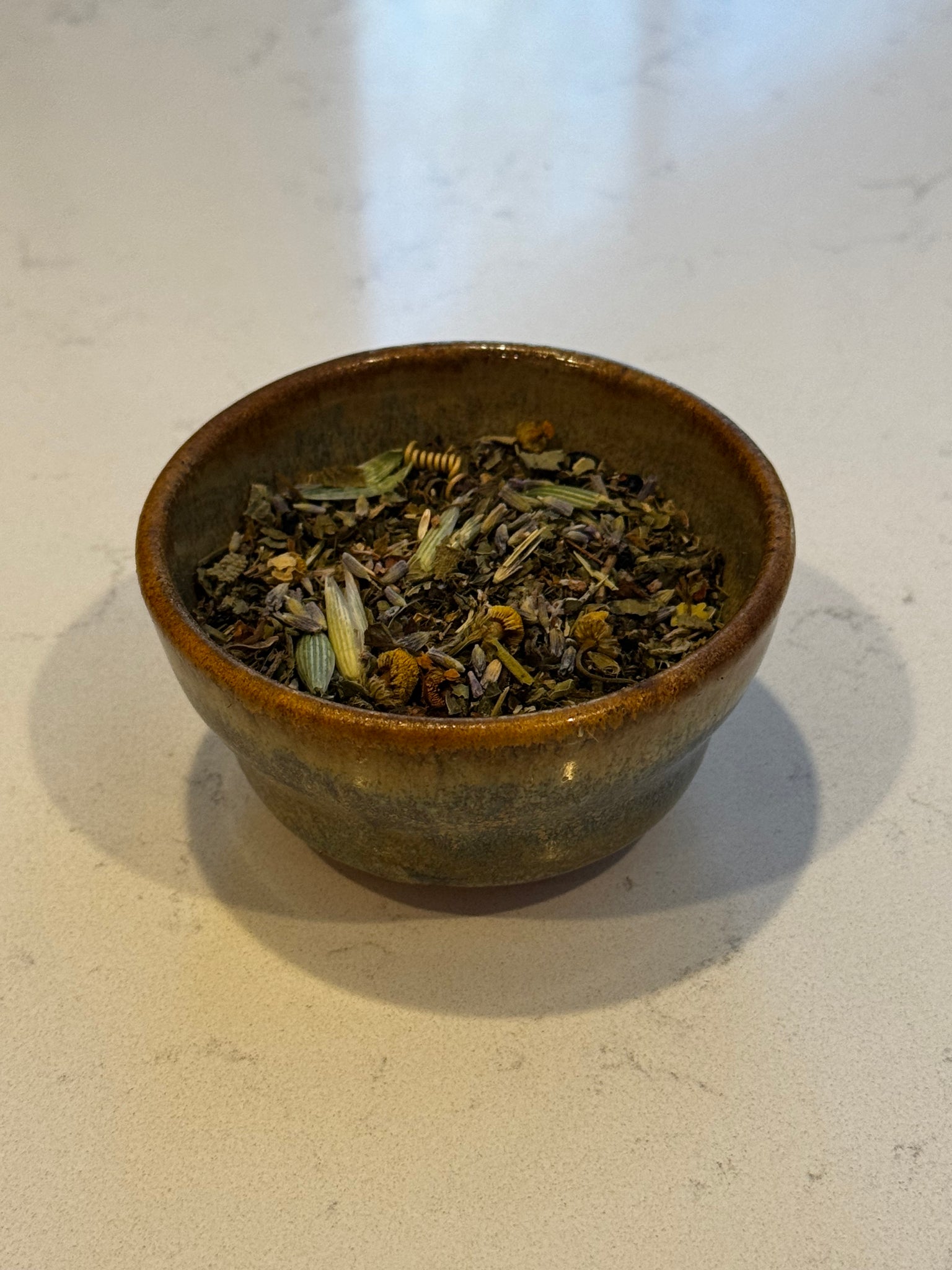 This blend is crafted for nervous system restoration. Passionflower helps slow a racing mind. Oatstraw nourishes and steadies frayed nerves. Lavender and chamomile relax tension held in the body. Sage offers gentle clarity, and lemon balm ties it all together — soothing yet lightly uplifting.